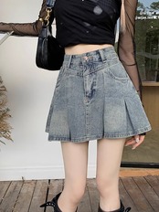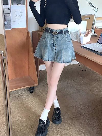 ミニ丈 ボトムス ハイウエスト 美脚見え 細見え トレンド シンプル カジュアル ファッション 美脚 脚長 スタイルアップ