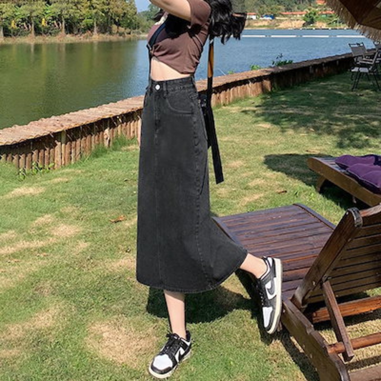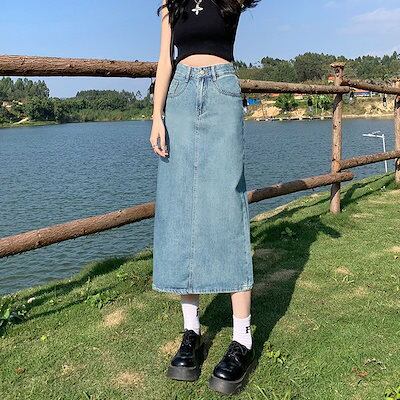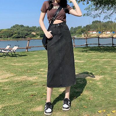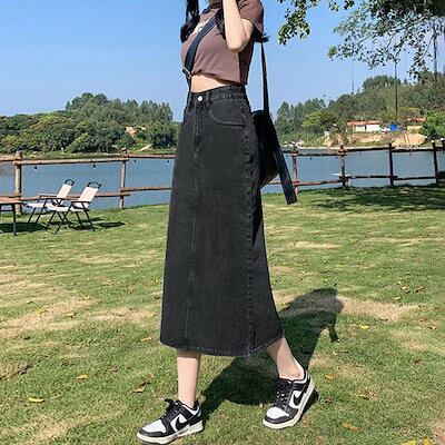 ロング スカート春 夏 秋 冬 レディース デニム ロングスカート ボトムス タイトスカート シンプル カジュアル ストレッチ