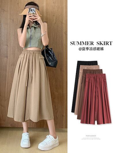 キュロットスカートワイドパンツ レディースハイウエスト 体型カバーズボン着痩せスカートワイドパンツ