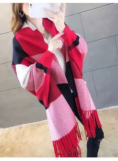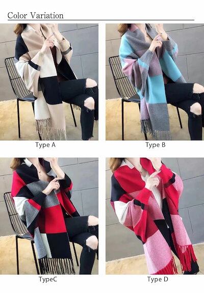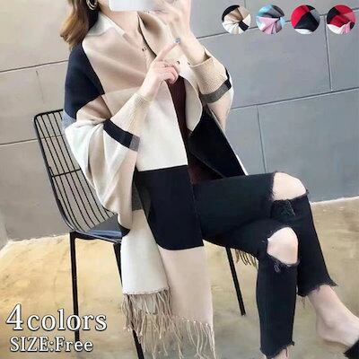 チェック ストール 大判ストール 暖か 総柄 (メール) フリンジ付ストール 秋冬 羽織 レディース おうち時間 レディース カーディガン 選べる4Type ニット