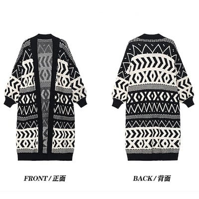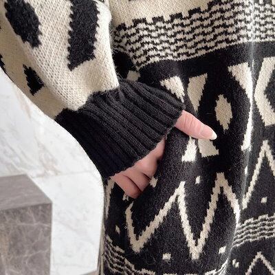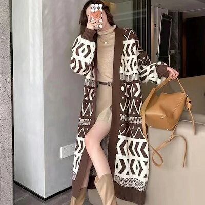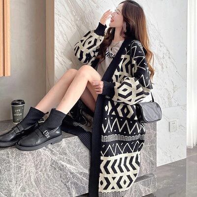 ボリューム カーディガン アウター ロング 秋 幾何学柄 カジュアル カーデ 大人可愛い 冬 レディース ニット 羽織り 長袖 トップス トレンド