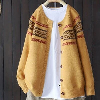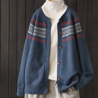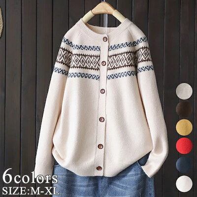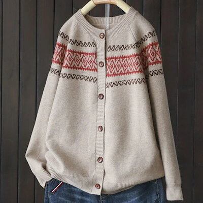 ニット 冬 トレンド カーディガン Uネック 長袖 柄 レディース 秋 カジュアル レトロ 大人可愛い ノルディック