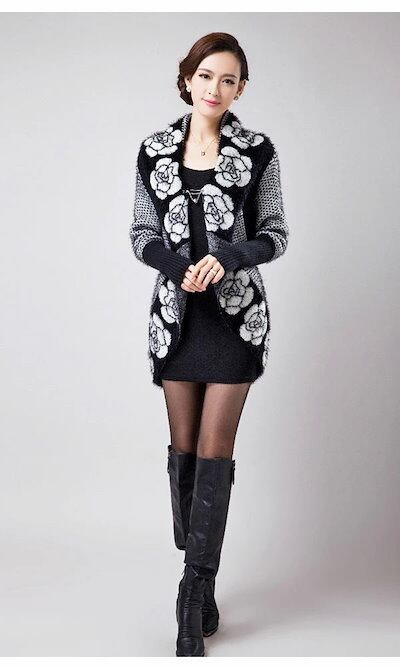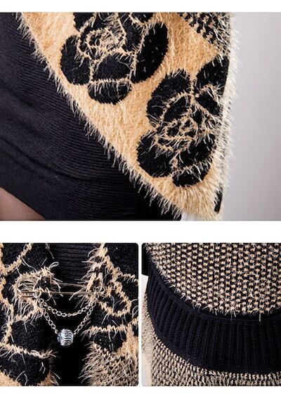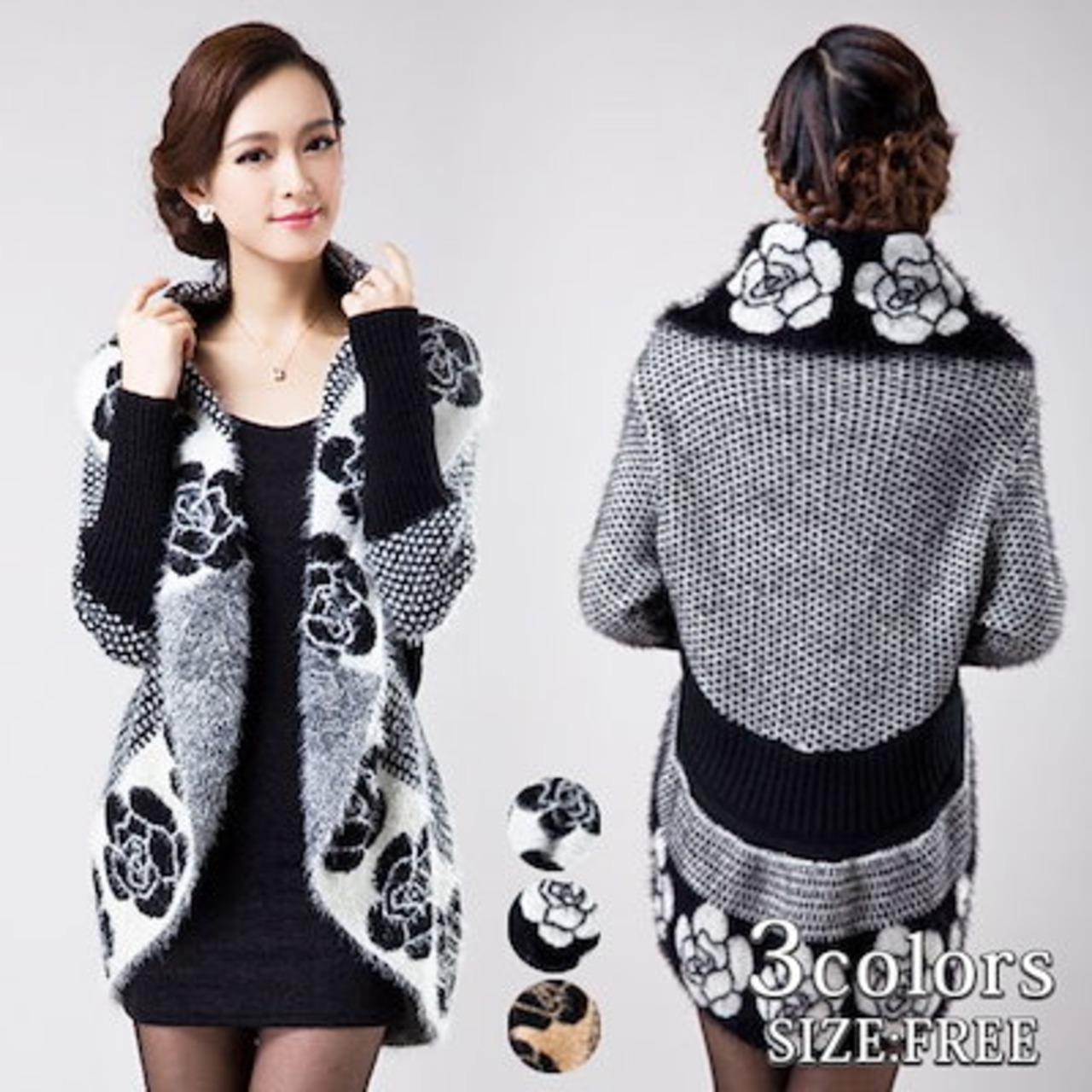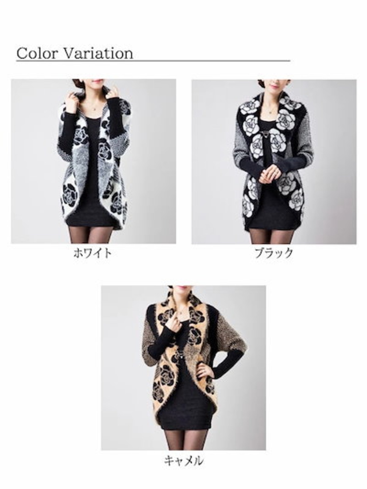 上品 大人 大花柄 レディース ニットセーターレディース 女性用 キャメル 総柄 (メール) ニットカーディガン 暖か レディース あったか 花柄ふ