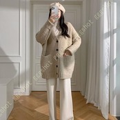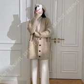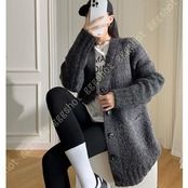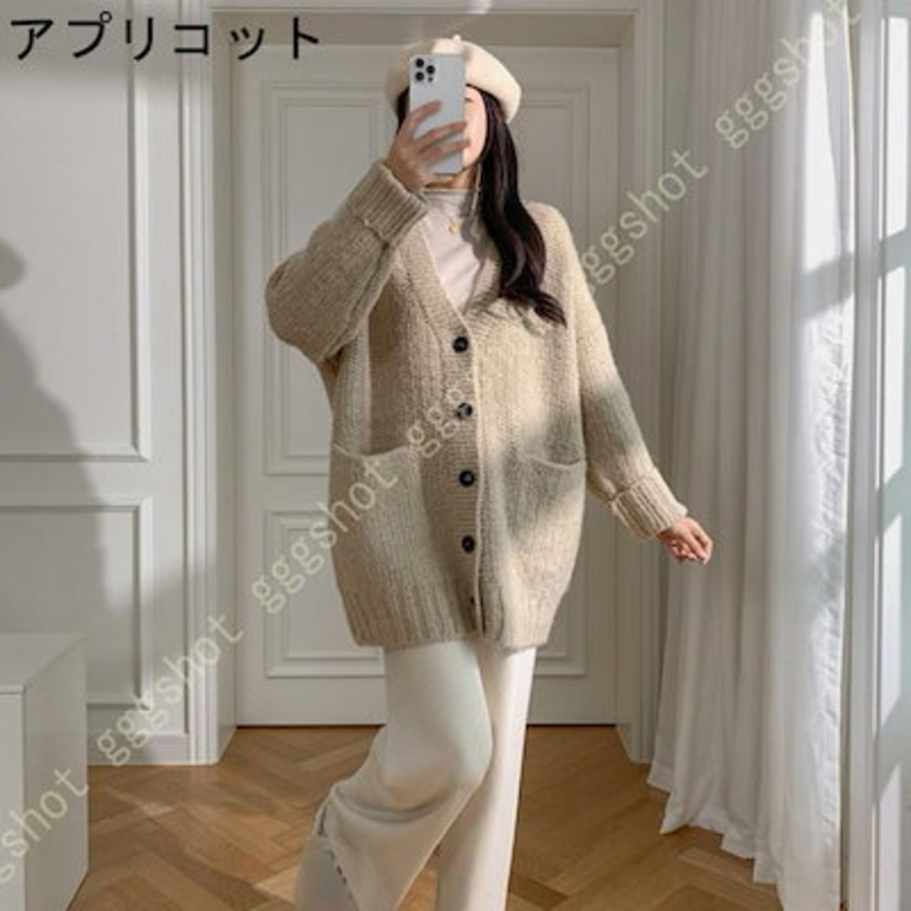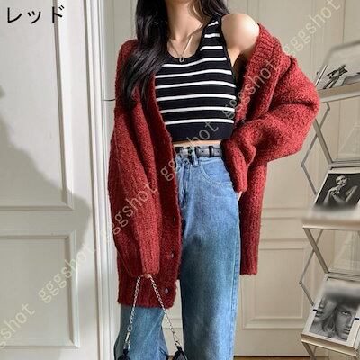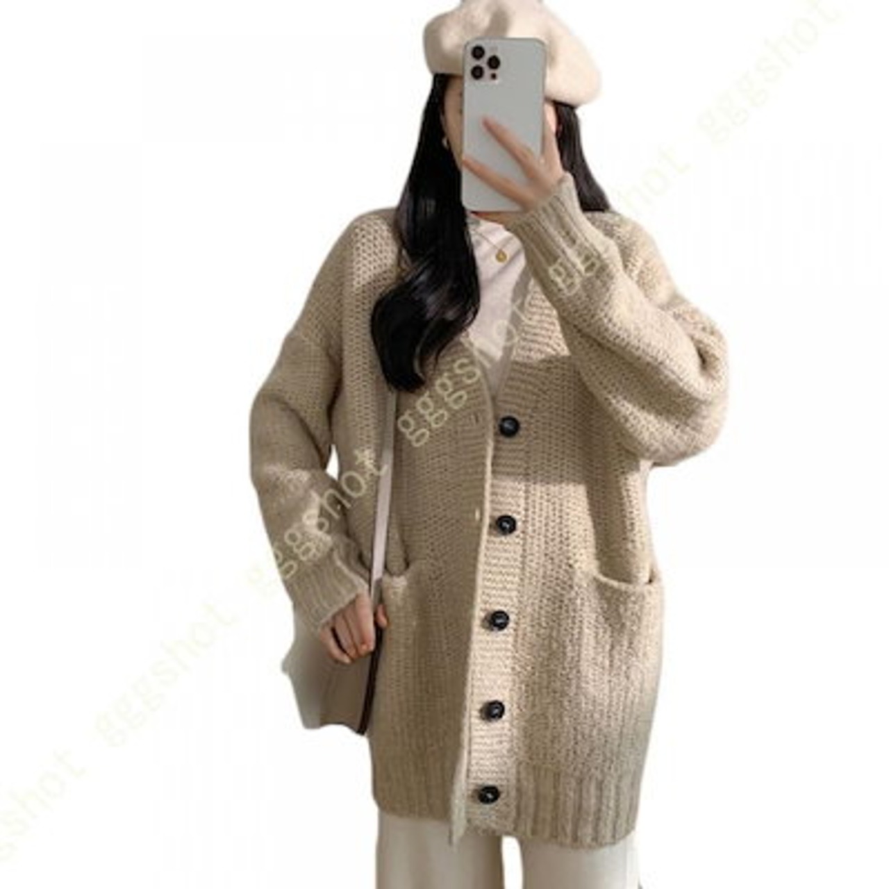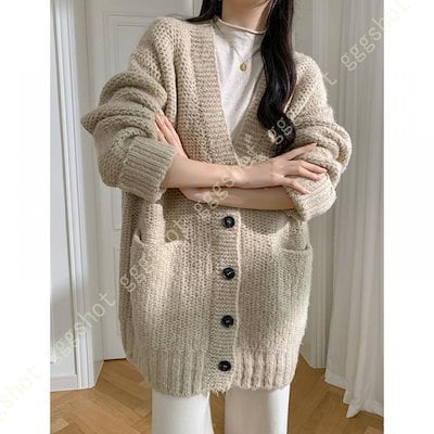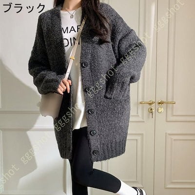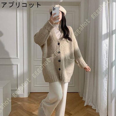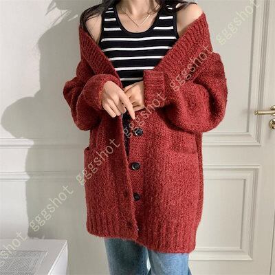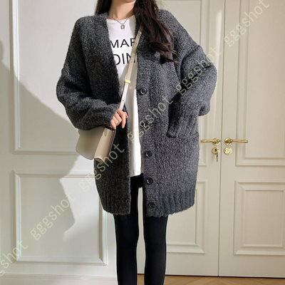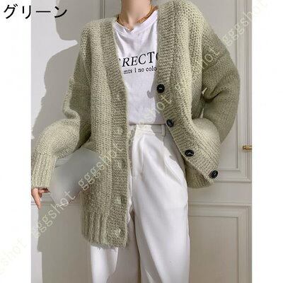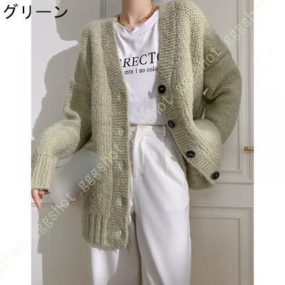 ニットカーディガン レディース ニット セーター 春秋 秋冬カーディガン 厚手 肩落ち 前開き 長袖 ボタン ニットトップス おしゃれ シンプル カジュアル