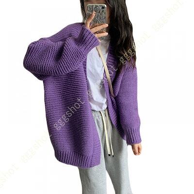ニットカーディガン レディース トップス アウター 羽織 ロングカーディガン 長袖 vネック 前開き 無地 オーバーサイズ ゆったり カジュアル 着痩せ おしゃれ