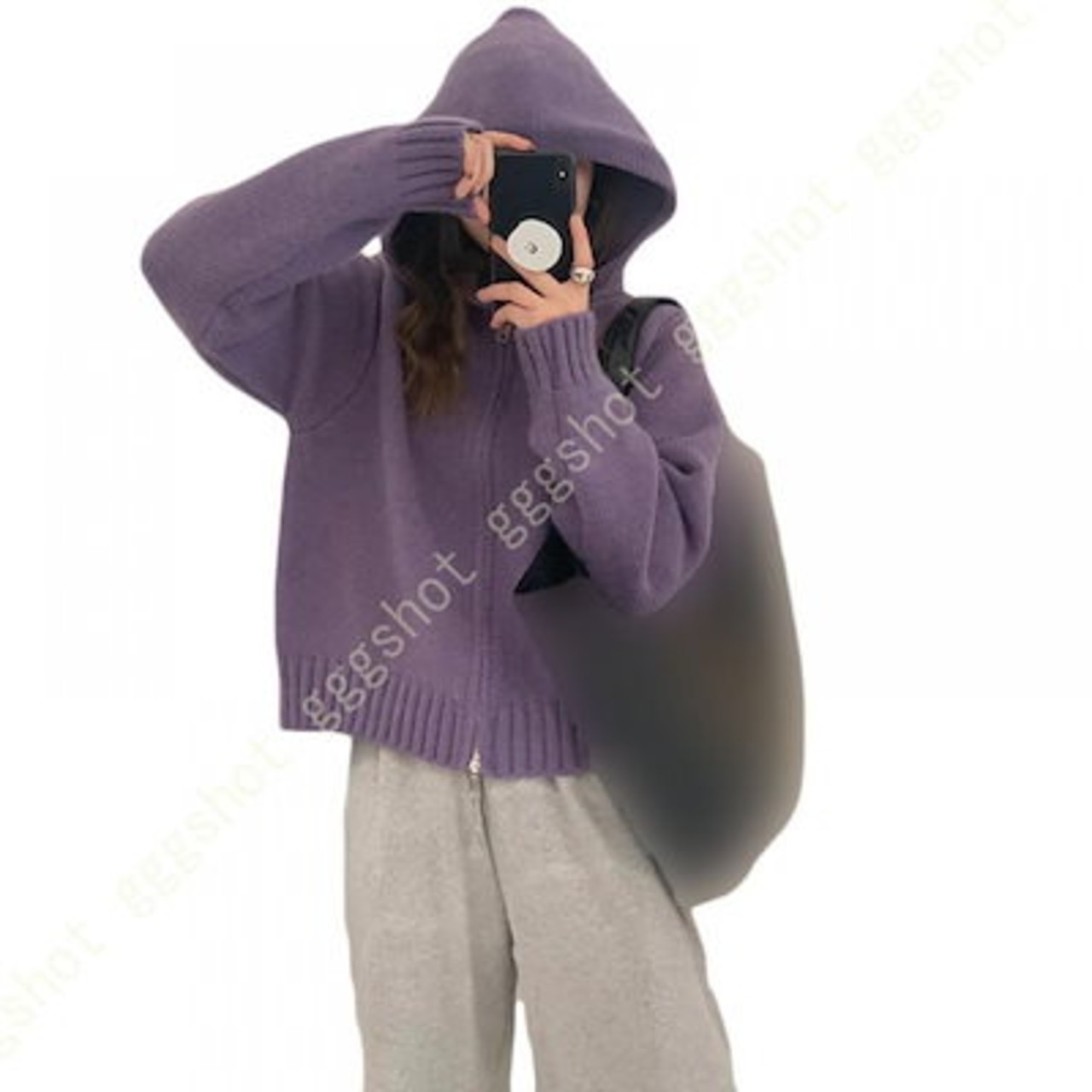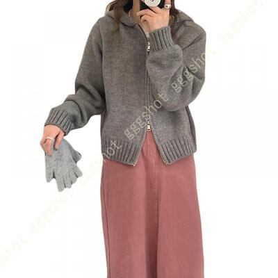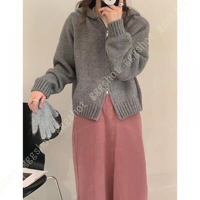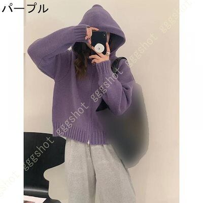 ニットパーカー レディース 秋冬 春秋 カーディガン フード付き ゆったり スクール 学園風 可愛い 前開き 無地 厚手 暖かい 通学 ジップアップ 女性 トップス