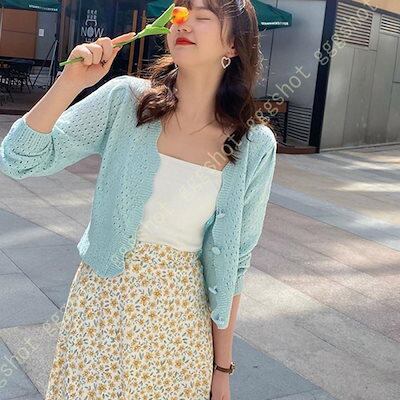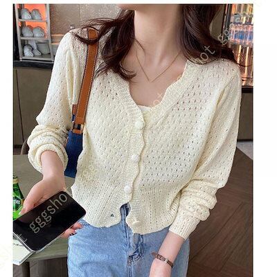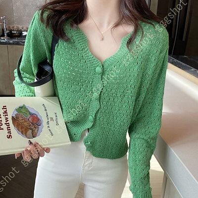 カーディガン レディース ニット 長袖 アウター Vネック ニットカーデ ライトアウター 羽織り シンプル 無地 さらさら 保温 通気性 軽量 洗える