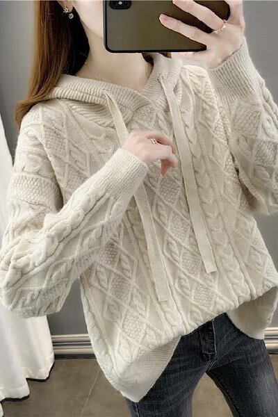 ニット パーカー レディース 春 秋 ケーブル編み フード付き ニットパーカー セーター 長袖 パーカー ゆったり フェミニン 着回し シンプル カジュアル 体型カバー 柔らかい お洒落 厚手 防