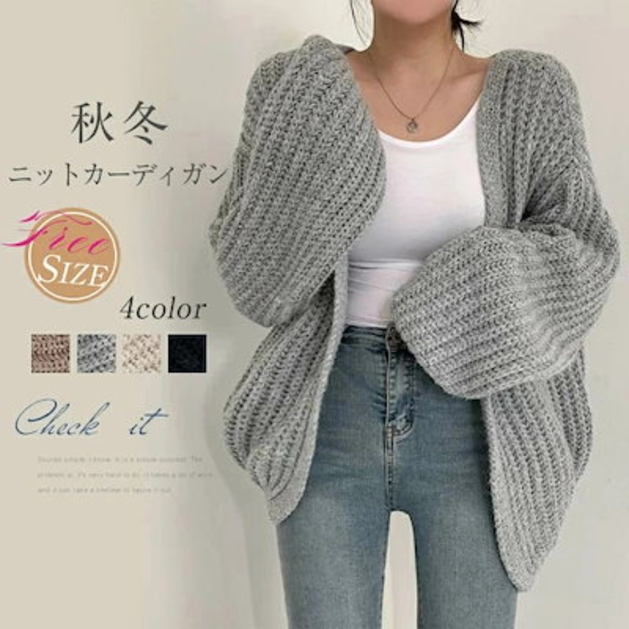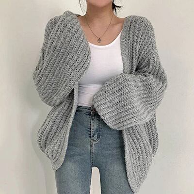 ニットカーディガン カーディガン ニット ざっくり編み カーデ ロングカーディガン コート レディース アウター ニットセーター とろみ ショート ゆったり 柔らか カジュアル 春 秋 通勤 普段着
