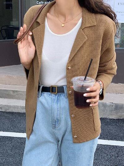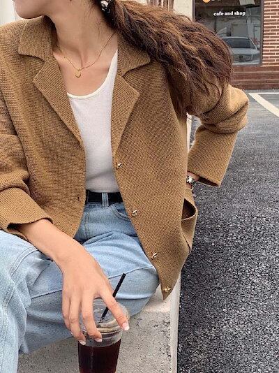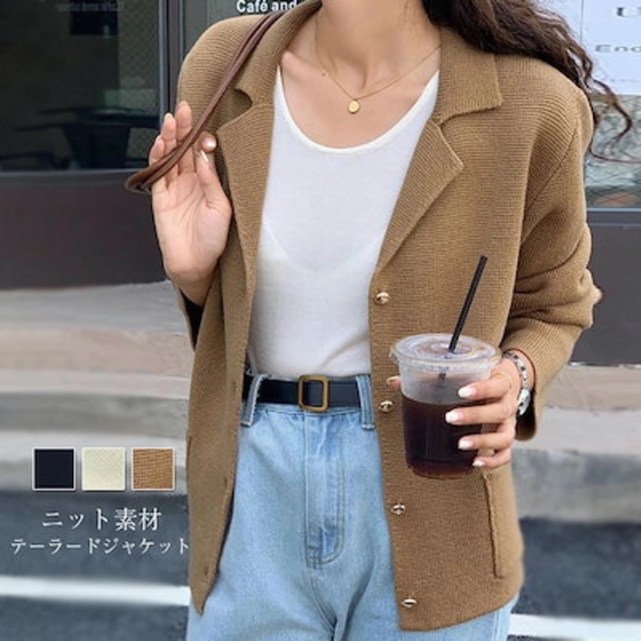テーラードジャケット ニット ジャケット レディース カーデ 春 秋 冬 羽織り カーデ ボタン ニット カーディガン きれいめ オフィス カジュアル トップス ニット セーター シンプル ゆったり