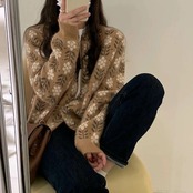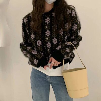 ニットセーター レディース 秋 冬 カーディガン 花柄 ニット カーデ コート アウター とろみ ショート ゆったり 柔らか カジュアル 体型カバー 大きいサイズ お洒落 春 秋 冬 通勤 普段着