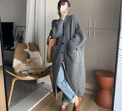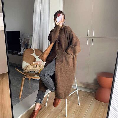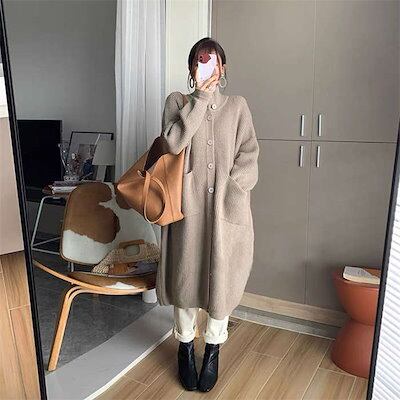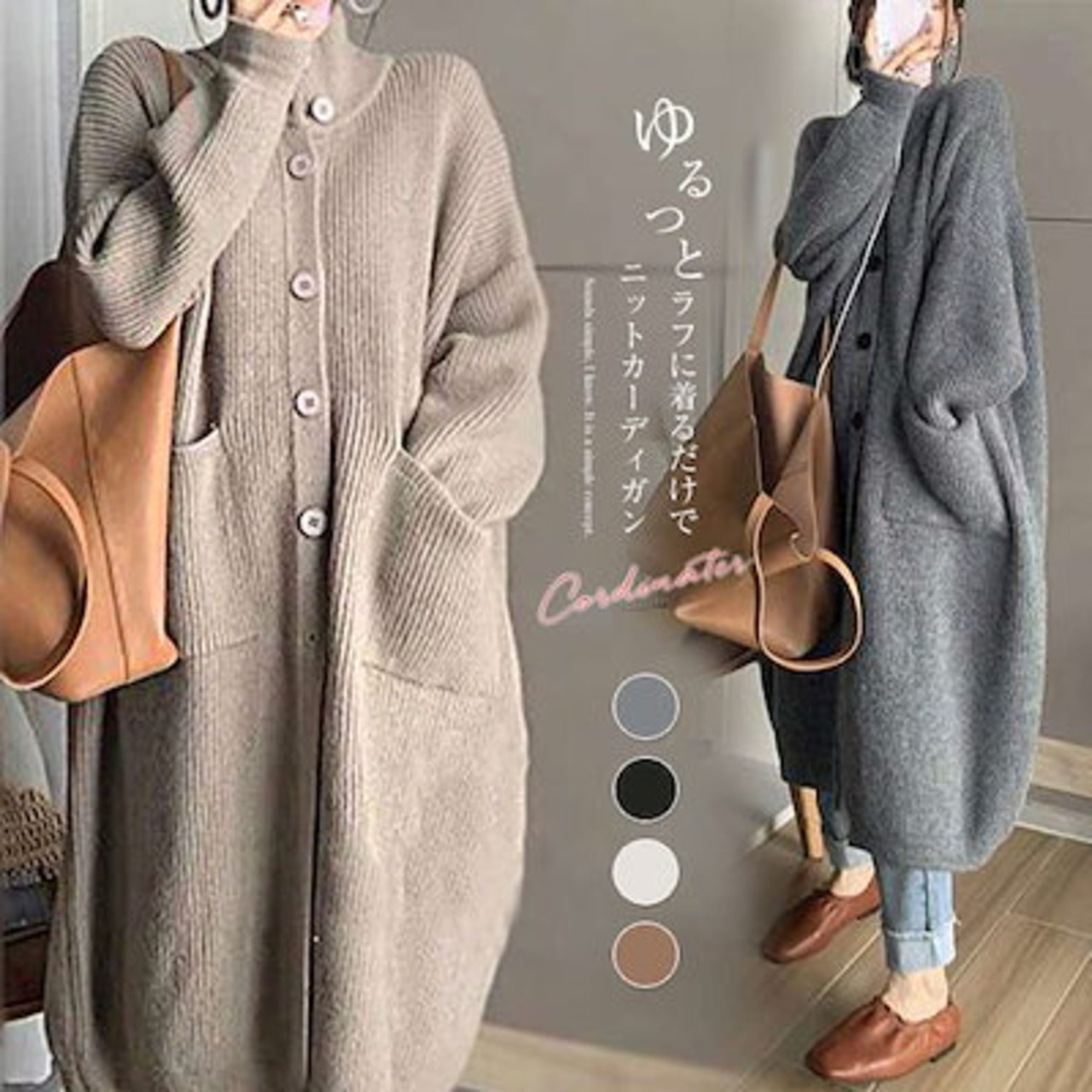 カーディガン ニット レディース ロング丈 ハイネック 長袖 秋 冬 ロングカーディガン ニットカーディガン カーデ コート アウター 厚手 あったか ニット セーター ビッグシルエット ゆったり 柔