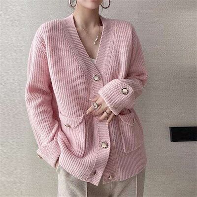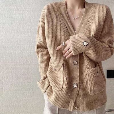 カーディガン レディース 秋 冬 長袖 ニット ニットカーディガン 厚手 セーター さっと羽織れる ニット羽織 ゆったり フェミニン 着回し シンプル カジュアル 体型カバー 柔らかい お洒落 上