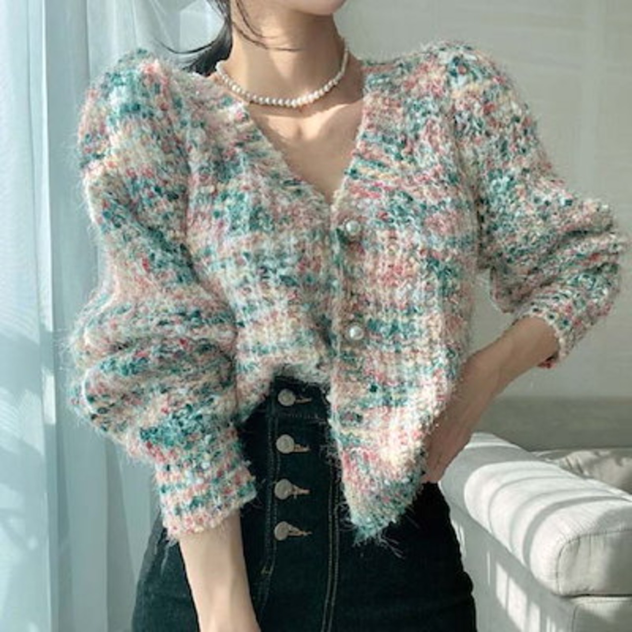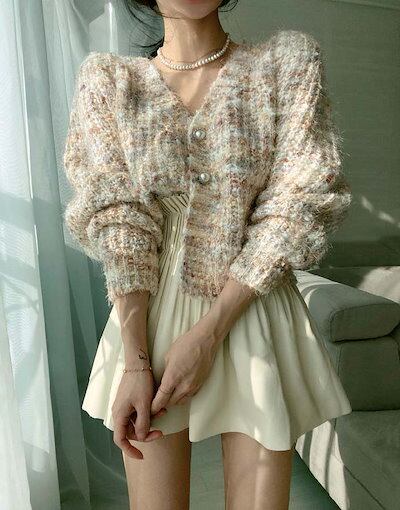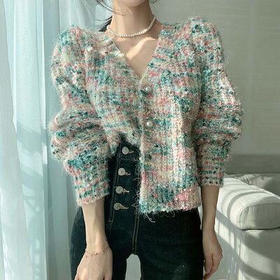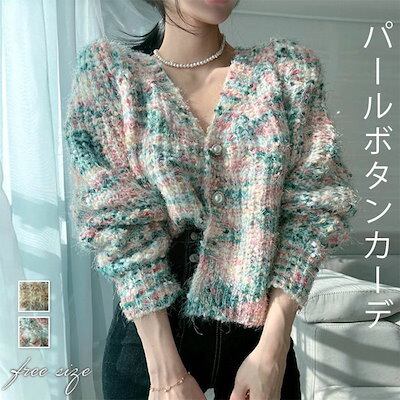 カーディガン レディース 秋 冬 長袖 パールボタン ニット ニットカーディガン 厚手 セーター さっと羽織れる もこもこ ニット羽織 ゆったり フェミニン 着回し シンプル カジュアル 体型カバー