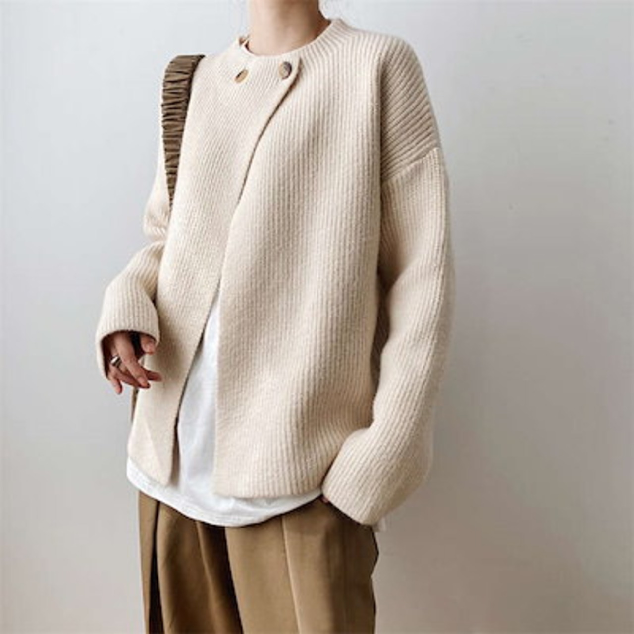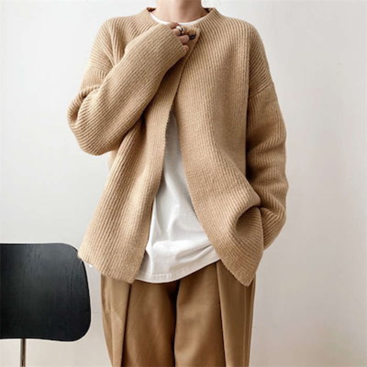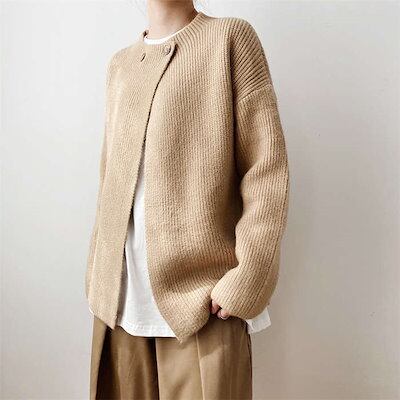 ニットカーディガン カーディガン レディース 秋 冬 長袖 ニット 厚手 セーター さっと羽織れる ニット羽織 ゆったり フェミニン 着回し シンプル カジュアル 体型カバー 柔らかい お洒落