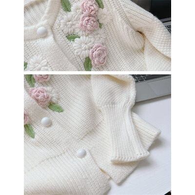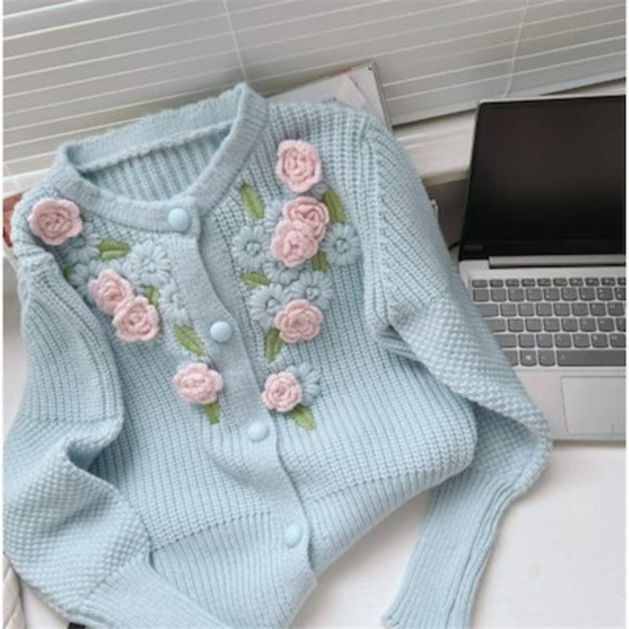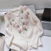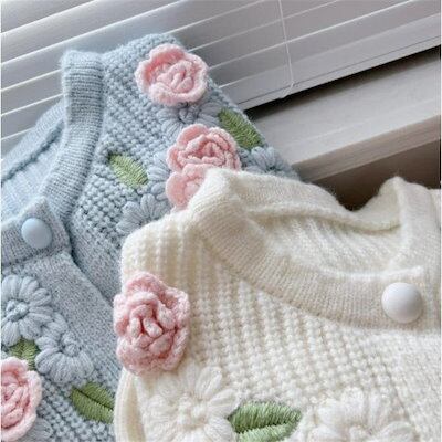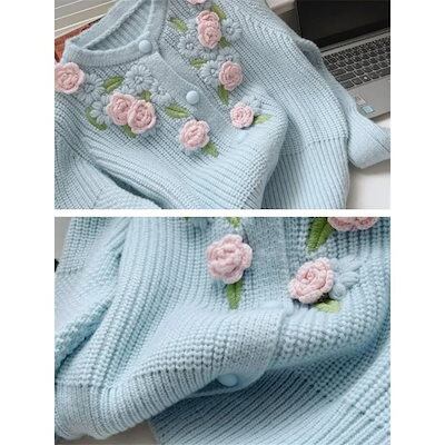新品大人気 セーターレディース きれいめ 長袖 ソー 大人 カジュアル おしゃれ セーター 花 フラワー リブトップス 着やせ 可愛い
