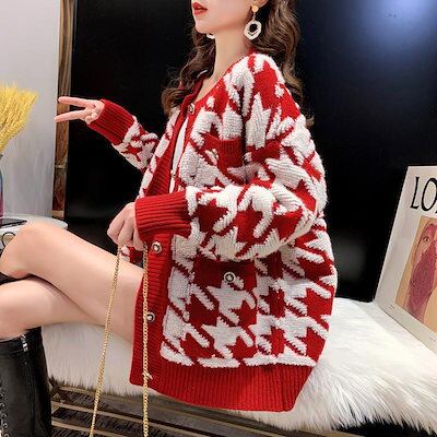 ダウンジャケット ダウンジャケット ニットカーディガン 人気なリプニット 裏起毛 レディース アウター AWアウター 厚手 冬アウター ジャケット チェック ロングコート 千鳥の格 アウター コート