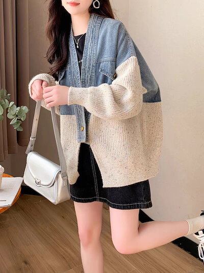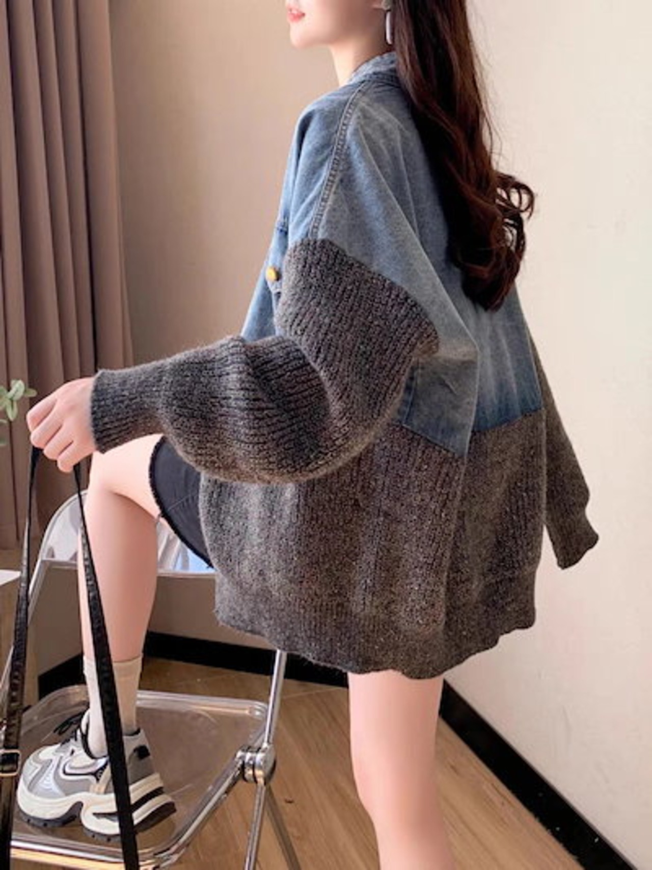 ダウンジャケット デニム 冬アウター AWアウター ダブルブレスト厚手 ロングコート ニットカーディガン レディース 人気なリプニット ジャケット ダウンジャケット アウター 裏起毛 切り替え コート