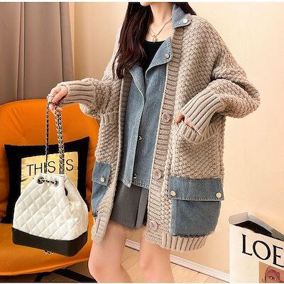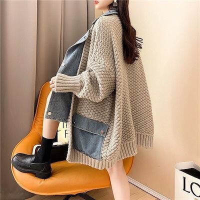 レディース コート AWアウター ロングコート ダウンジャケット ニットカーディガン デニム 裏起毛 アウター 切り替え ジャケット ダブルブレスト厚手 ダウンジャケット 人気なリプニット 冬アウター