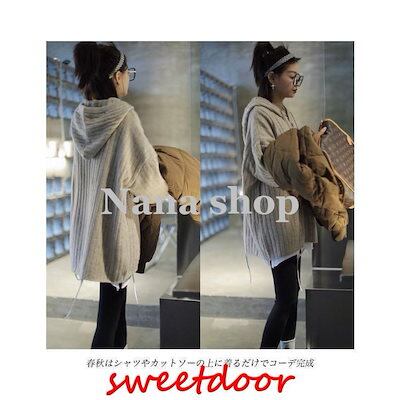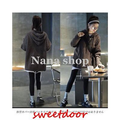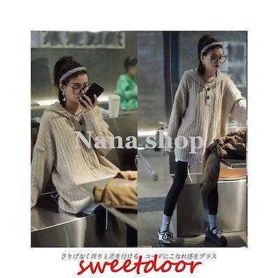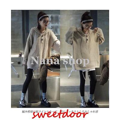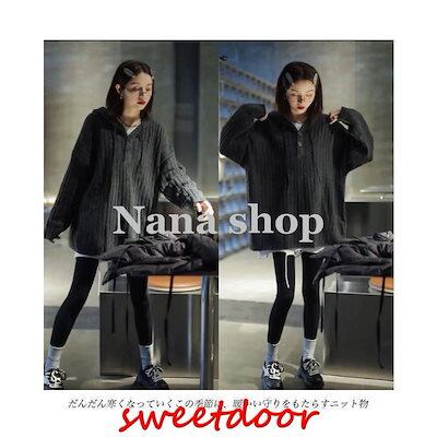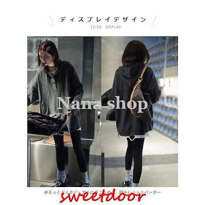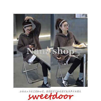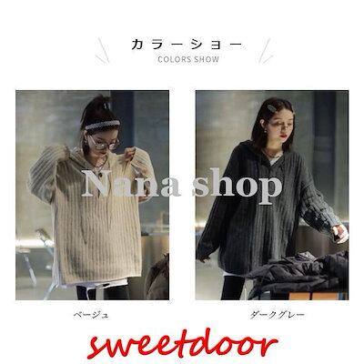 ニットパーカー レディース ニットセーター フード付き オーバーサイズ ニット セーター ドロップショルダー 重ね着風 ニットトップス プルオーバー