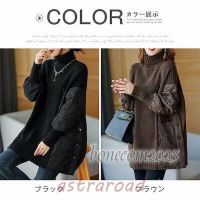 ニット レディース トップス リブニット 秋 長袖 厚手 レイヤード 切り替え 体型カバー セーター チュニック ドッキングニット ハイネック ゆったり 大きいサ 冬