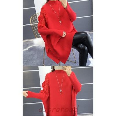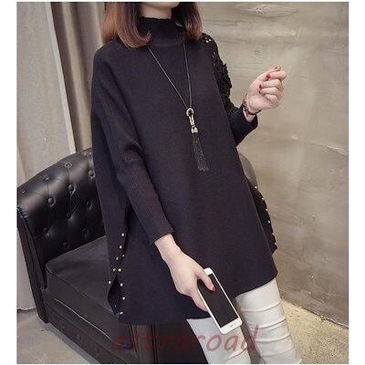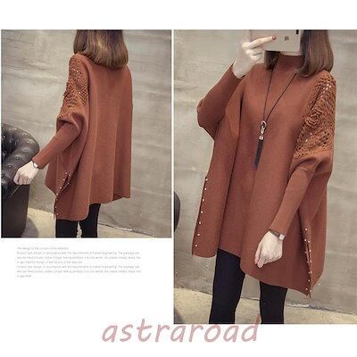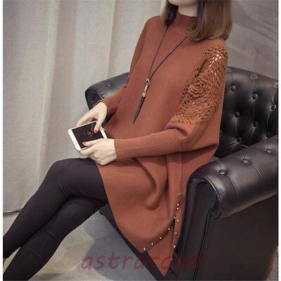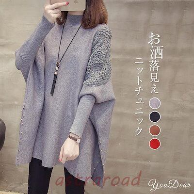 ニットチュニック セーター レディース 長袖 ニット ロングセーター 秋冬 トップス ドルマンスリーブ ニットソー ゆったり ハイネック 30代 40代 50代 60代