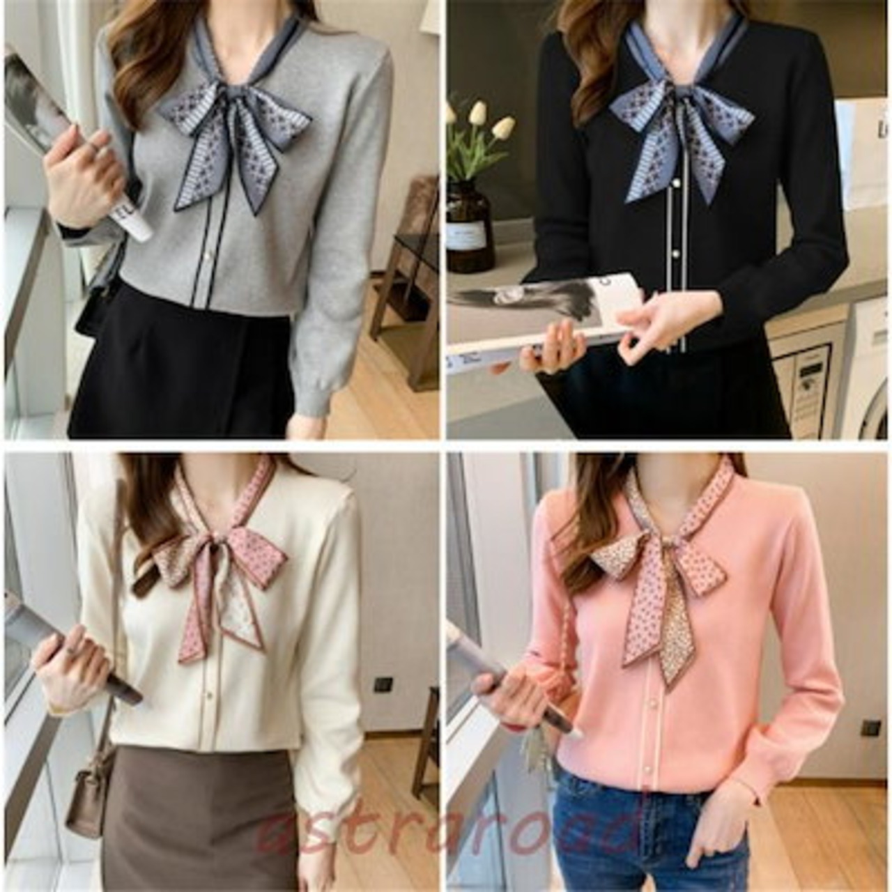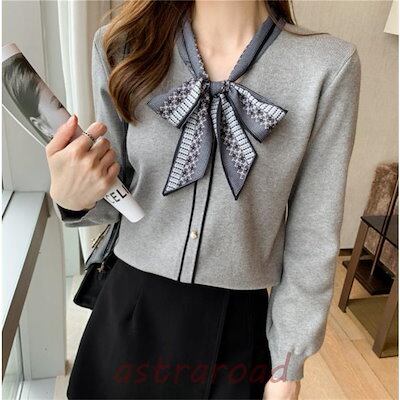 ニットセーター レディース 秋冬 40代 長袖 ニットトップス トップス リボンネック レディース 洗えるニット 韓国風 大人 通勤OL ゆったり ブラック