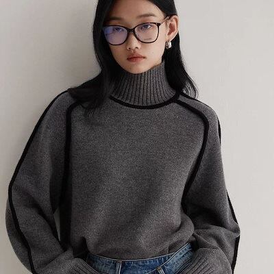 メガ割!早い者勝ちです!高級感 ニットセーター レディース キュービックストライプ デザイン ニット トップス 韓国ファッション カベーシックニット百掛け 慵?? ハイネックカシミヤタッチ