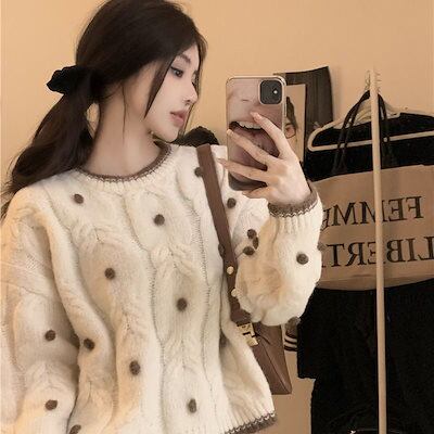 優しさ 怠惰風 セーター 秋冬 ショート 長袖ニット トップス レディース ゆったり オールマッチ カットソー ラウンドネック プルオーバー