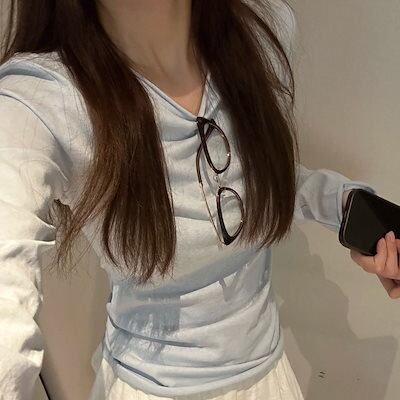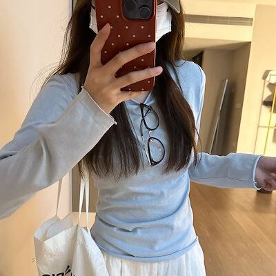 長袖 Tシャツ レディース 2024 日焼け止めスモック 初秋 韓国製 多用途 薄い部分 ボトム トップス ベーシックニット