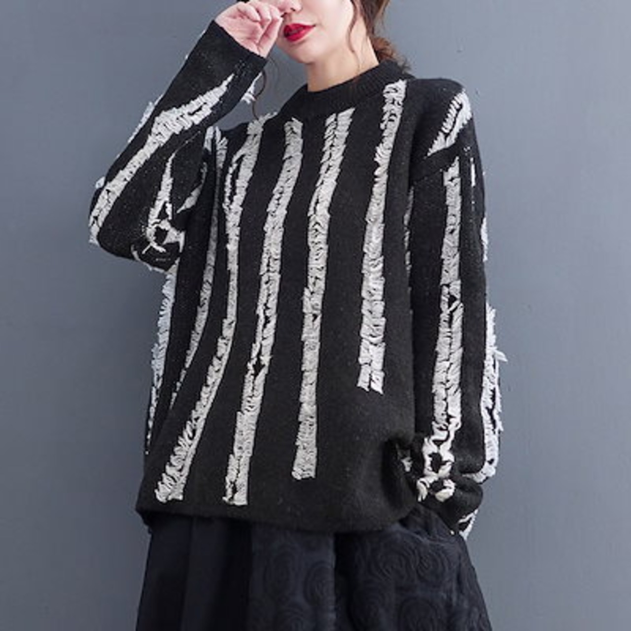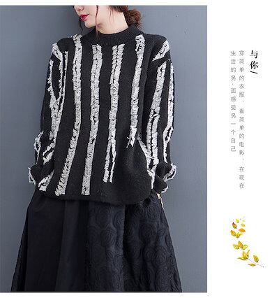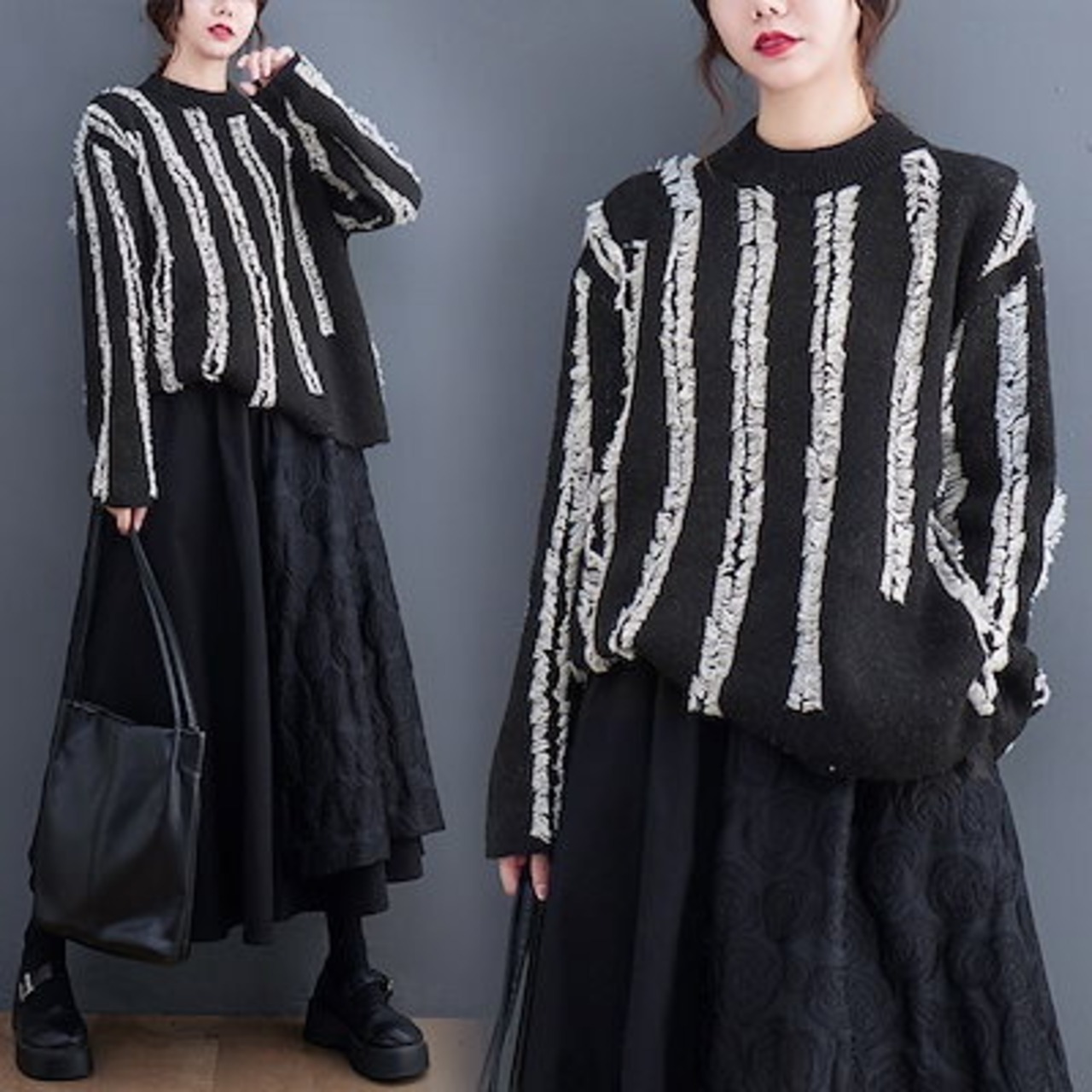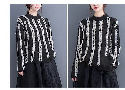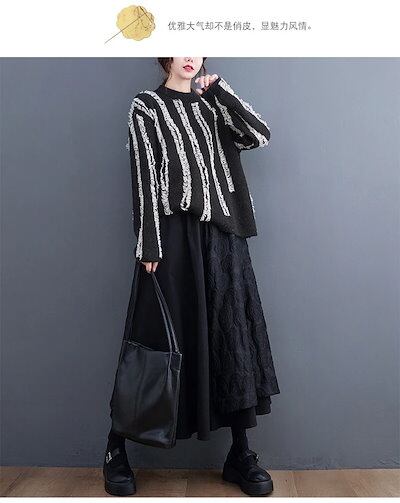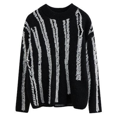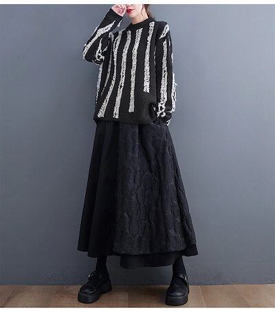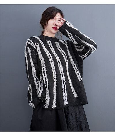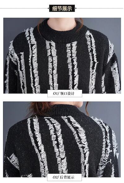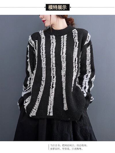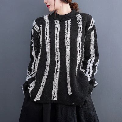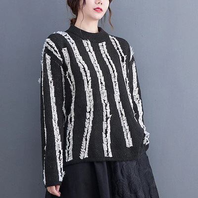 2024新作 ニット ゆったり ラウンドネック おしゃれ ボーダー セーター レディース トップス メガ割