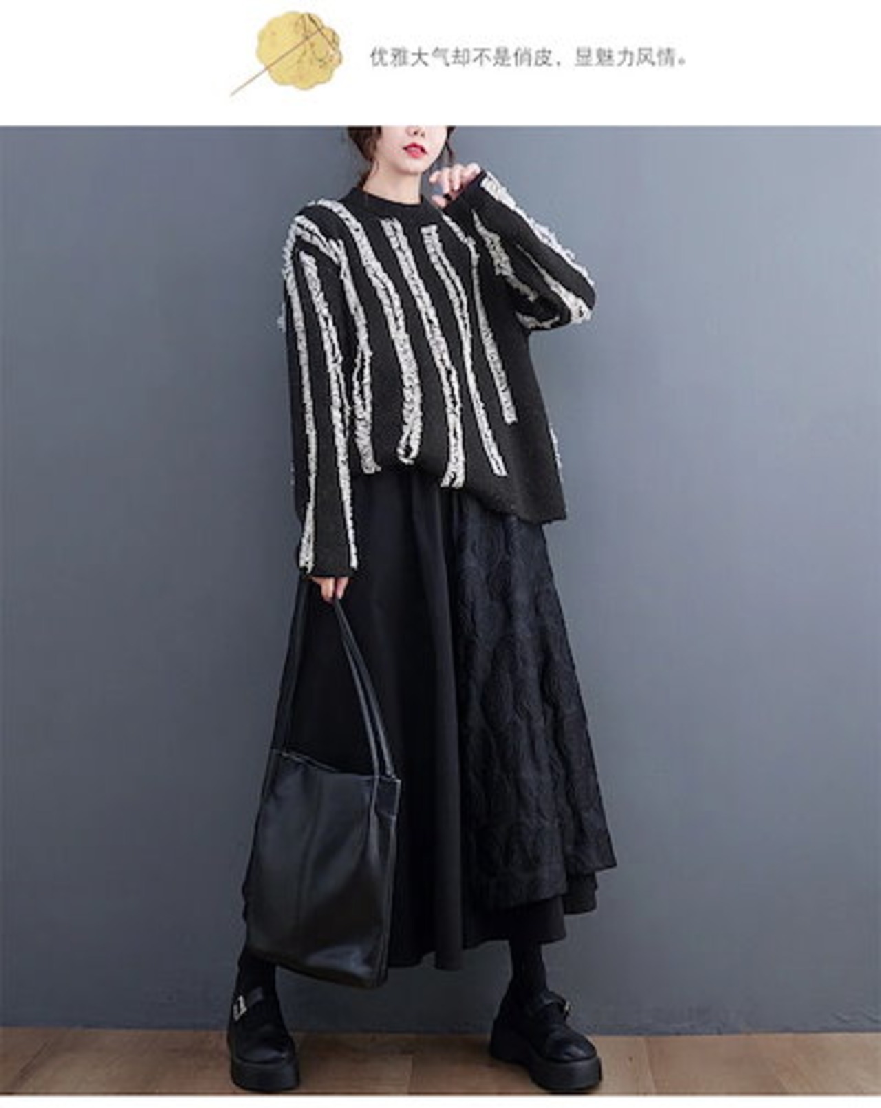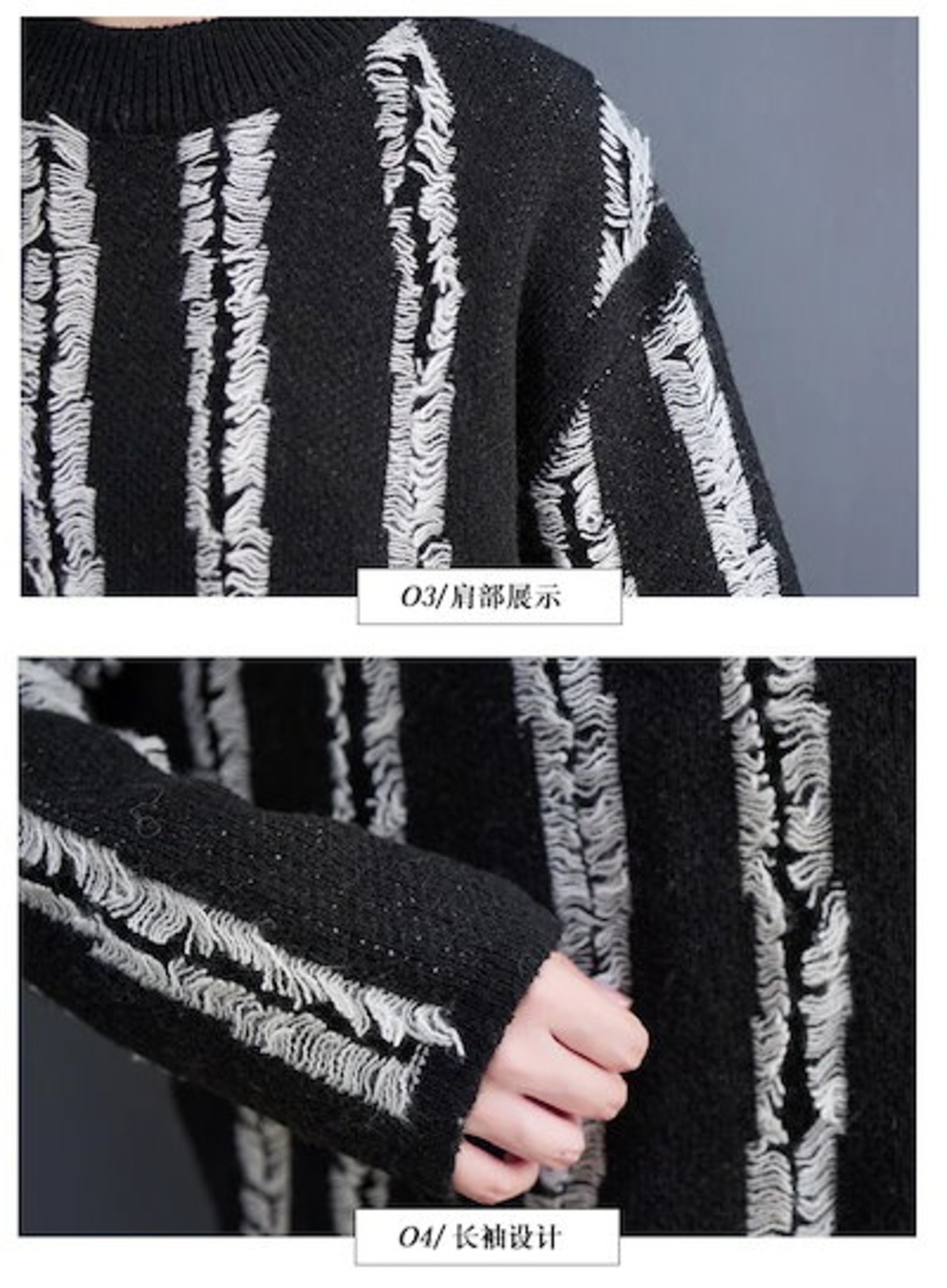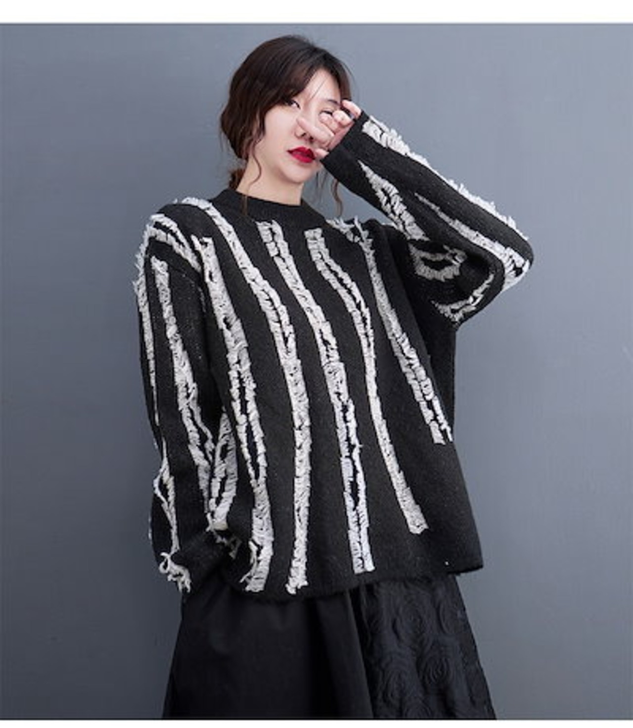 2024新作 ニット ゆったり ラウンドネック おしゃれ ボーダー セーター レディース トップス メガ割
