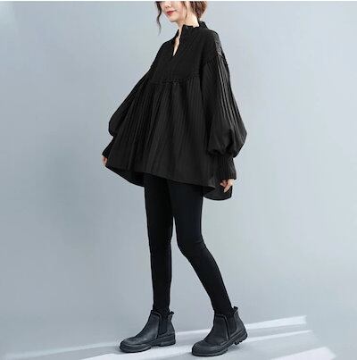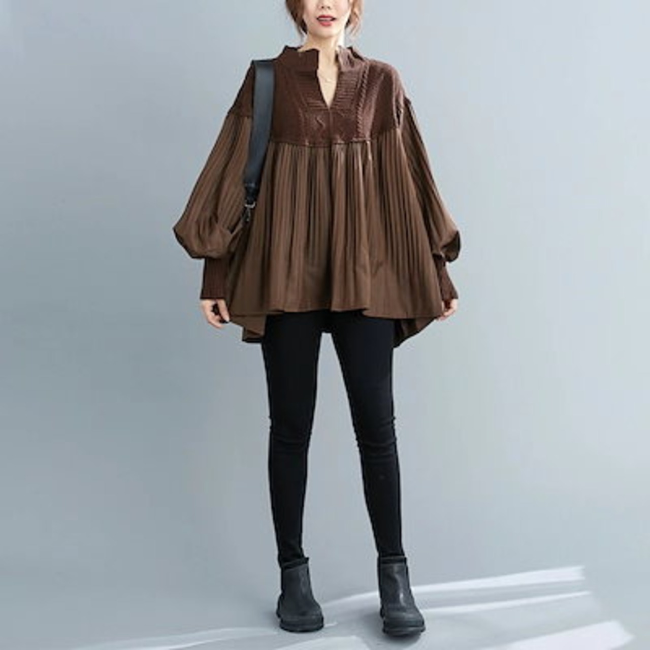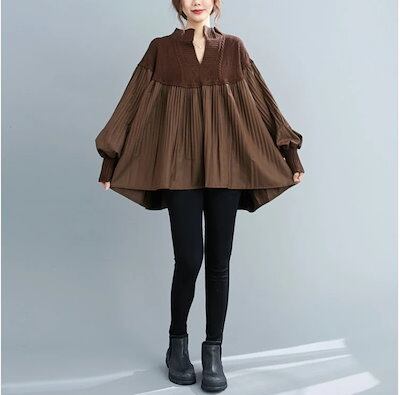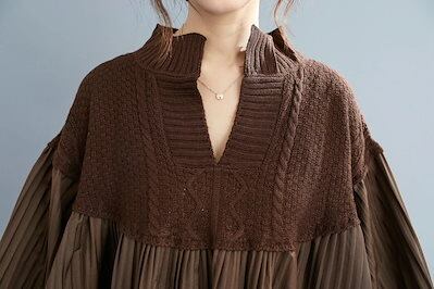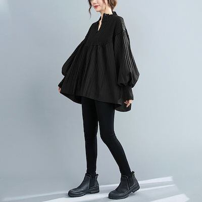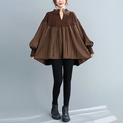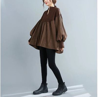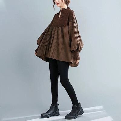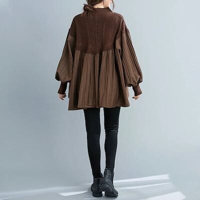 2024新作 プリーツ ニット Aライン ドッキング 大きいサイズ 体型カバー チュニック ゆったり レディース トップス メガ割