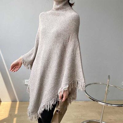 ニット ハイネック レディース ビッグシルエット 華奢見せ タートルニット トップス 体型カバー ニットセーター 大人カジュアル 女性 ベーシックニット おしゃれ 秋 ニットポンチョ タートル