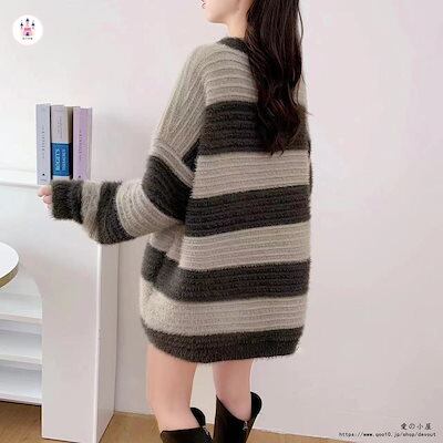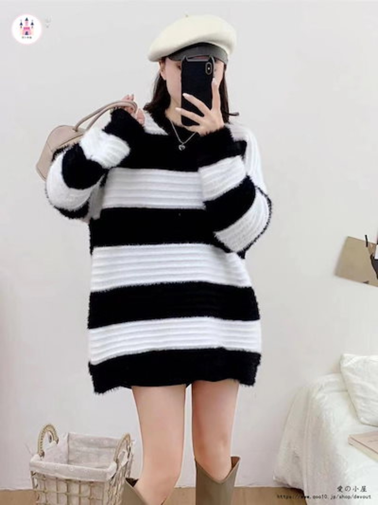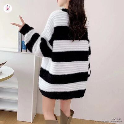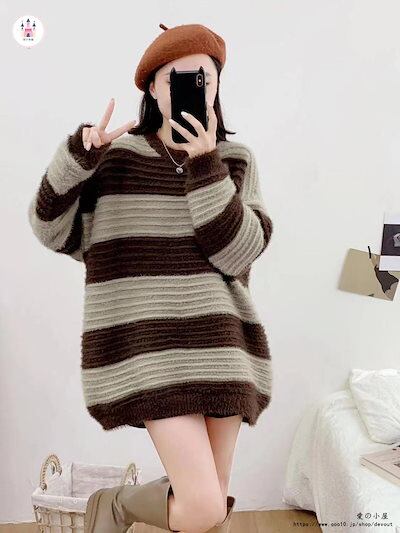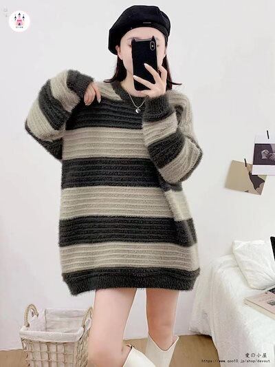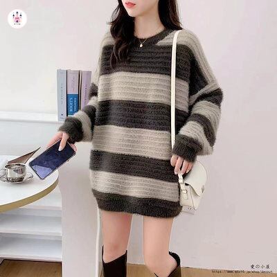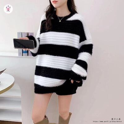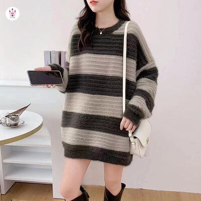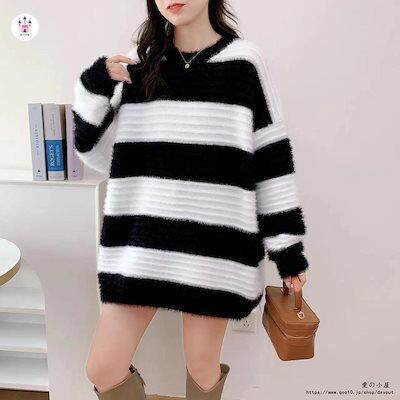 けだるい風長袖フェネックニットレディース秋冬セーター小人数デザイン感ぶつけ色ストライプのヘッダーセーター