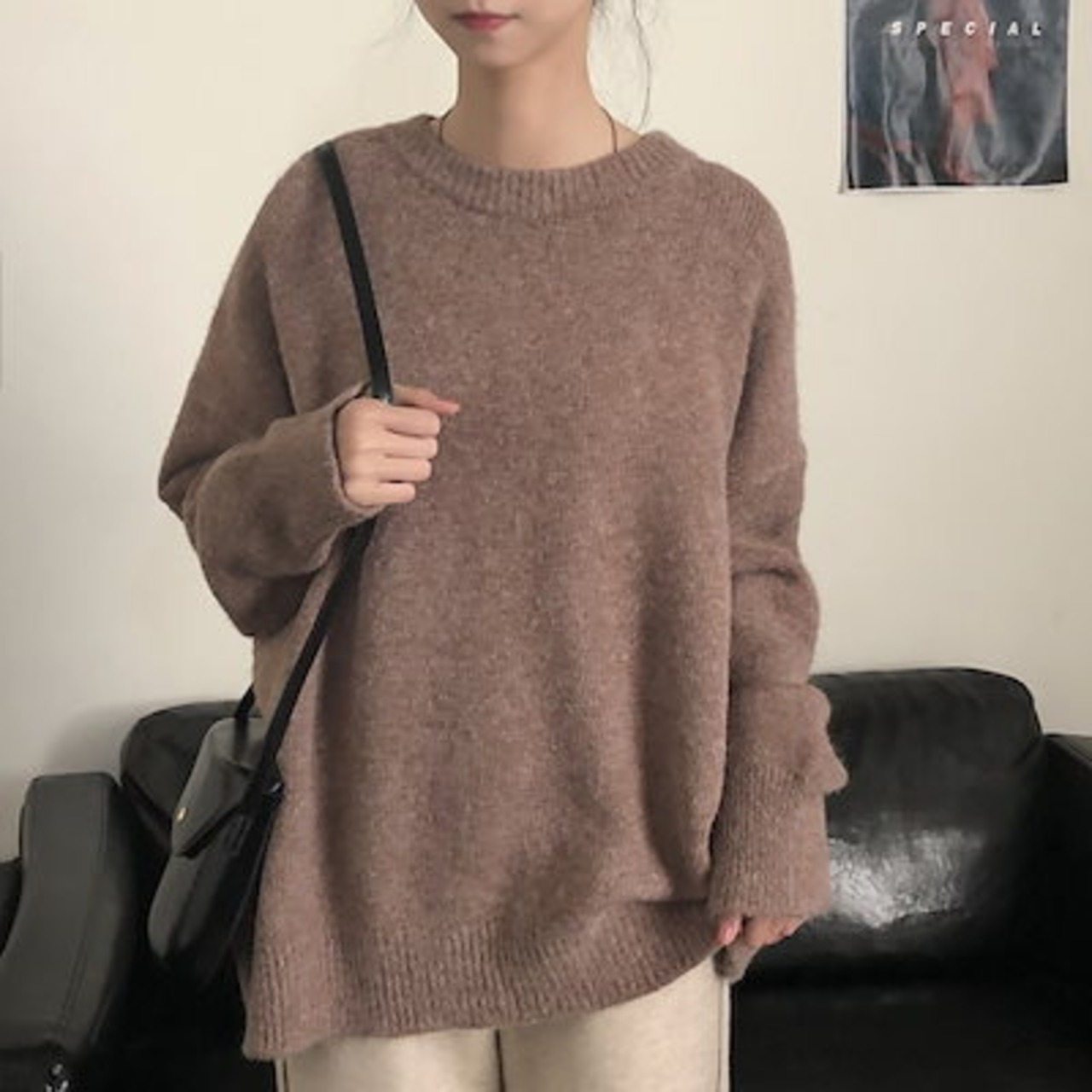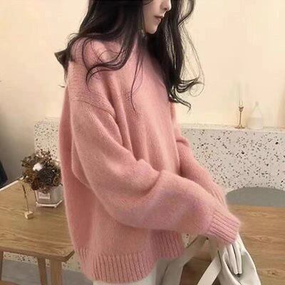 人気なリブニット 初秋 ベーシックニット 秋冬 怠惰な風 ニットセーター レディース ゆったり 厚手丸ネック ニットトップス 冬 快適暖かい 長袖 トップス 日韓ファッションカシミヤタッチ