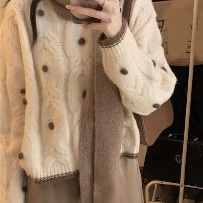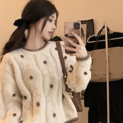 ベーシックニット 秋冬 怠惰風 セーター レディース ゆったり ショート丈 長袖トップス プルオーバー