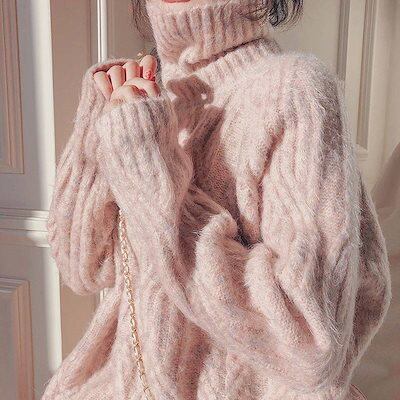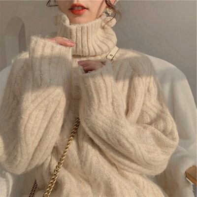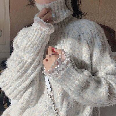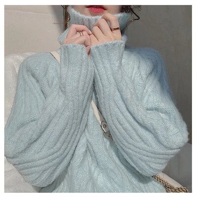 ベーシックニット タートルネック秋冬 人気ニット セーター レディース 新作 厚手 ツイスト 怠惰風 セミロング ゆったり セーター 母の日