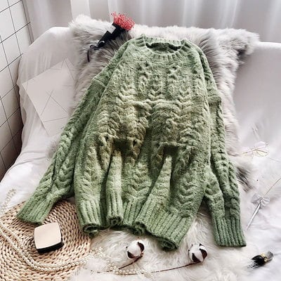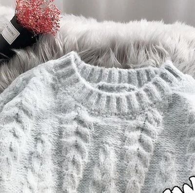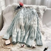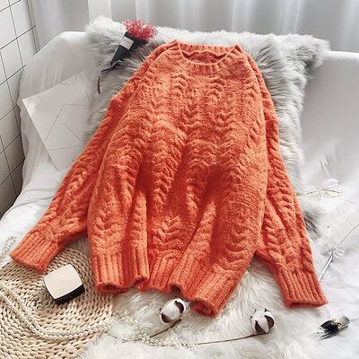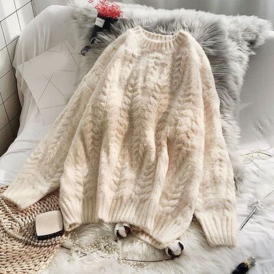 秋冬 毛糸 ニット レディース ゆったり ツイスト プルオーバー 怠惰風 長袖トップス 厚手 ラウンドネックセーター