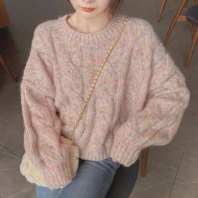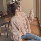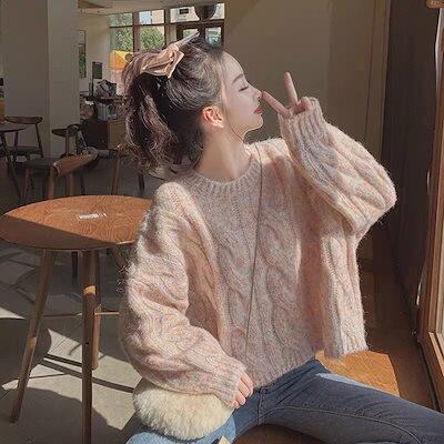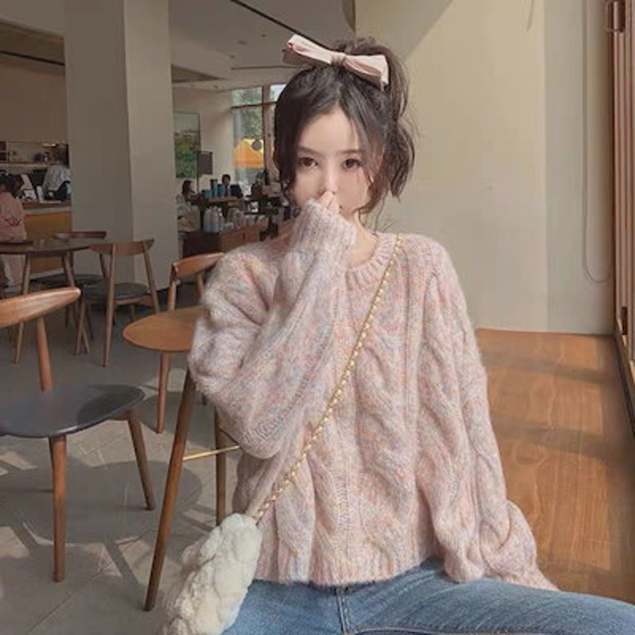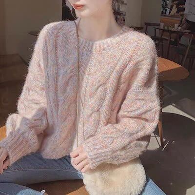 秋冬新作 プルオーバー セーター レディース ピンク ツイスト トップス おしゃれ ニットインナー