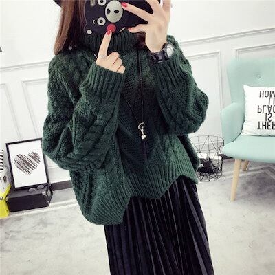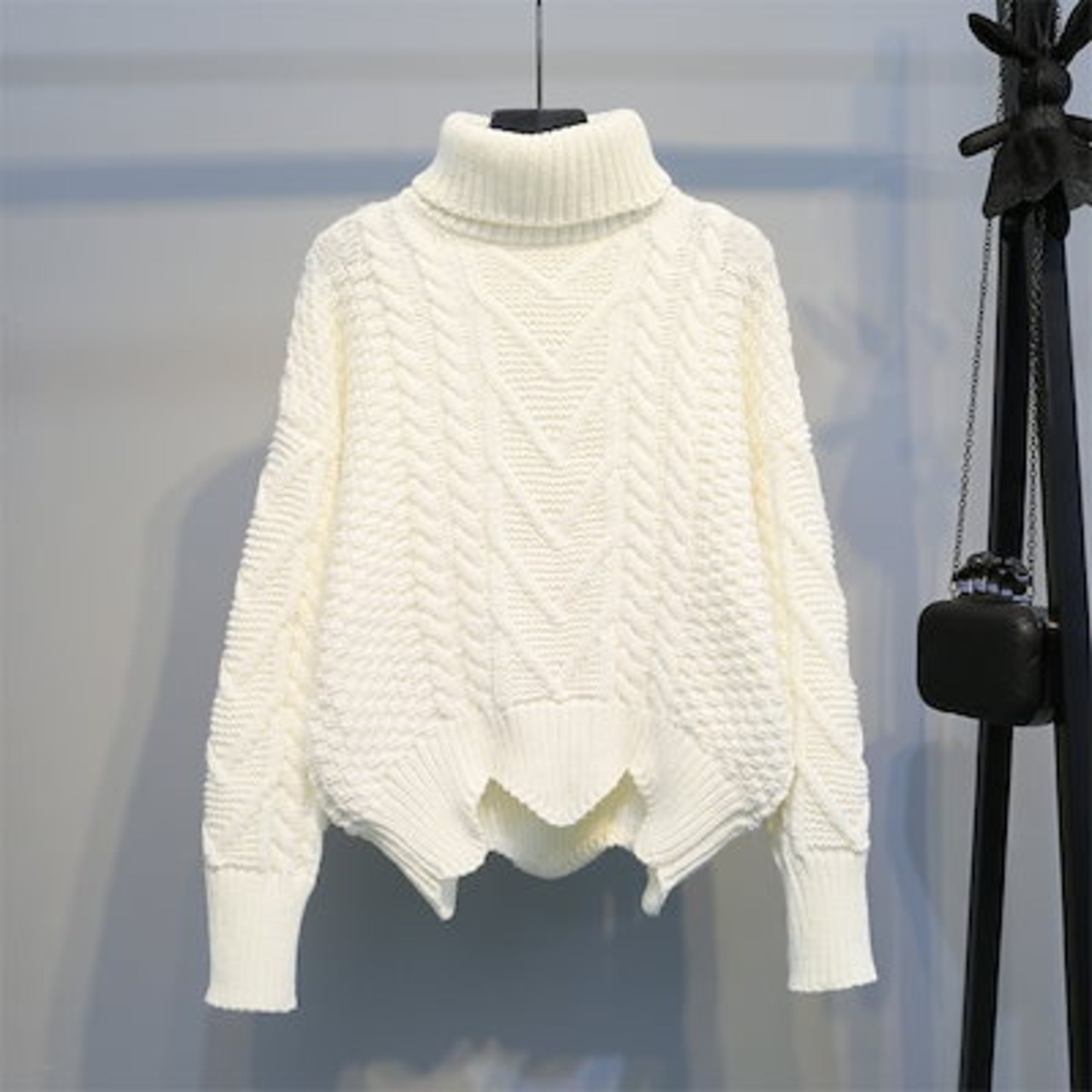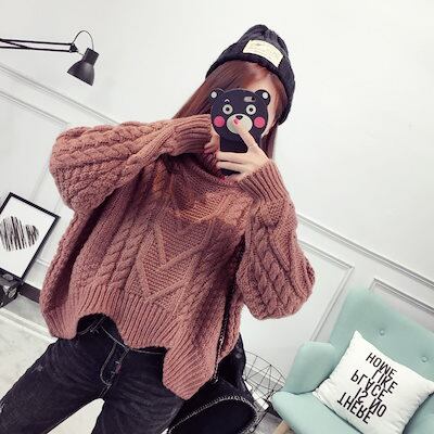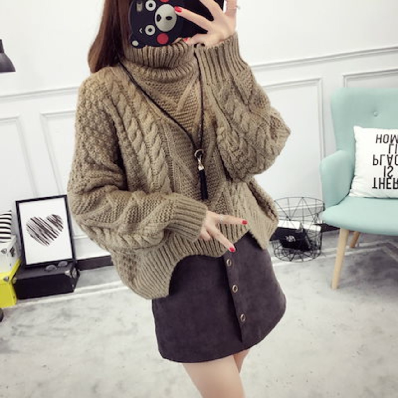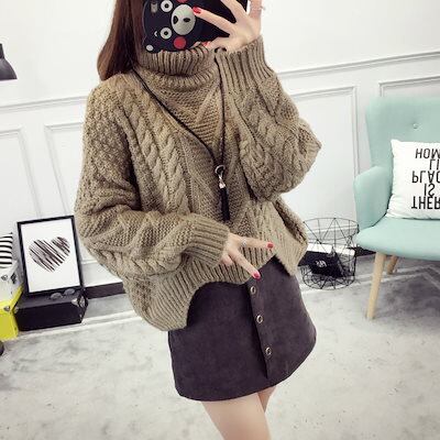 レトロ タートルネック 毛糸 セーター レディース ショート丈 秋冬 ゆったり トップス ニット プルオーバー