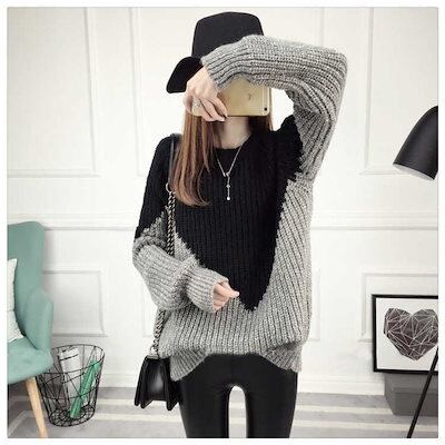 新作 ネット赤 厚手 毛糸 セーター レディース 秋冬 大きいサイズ ゆったり ニットインナー ラウンドネックセーター