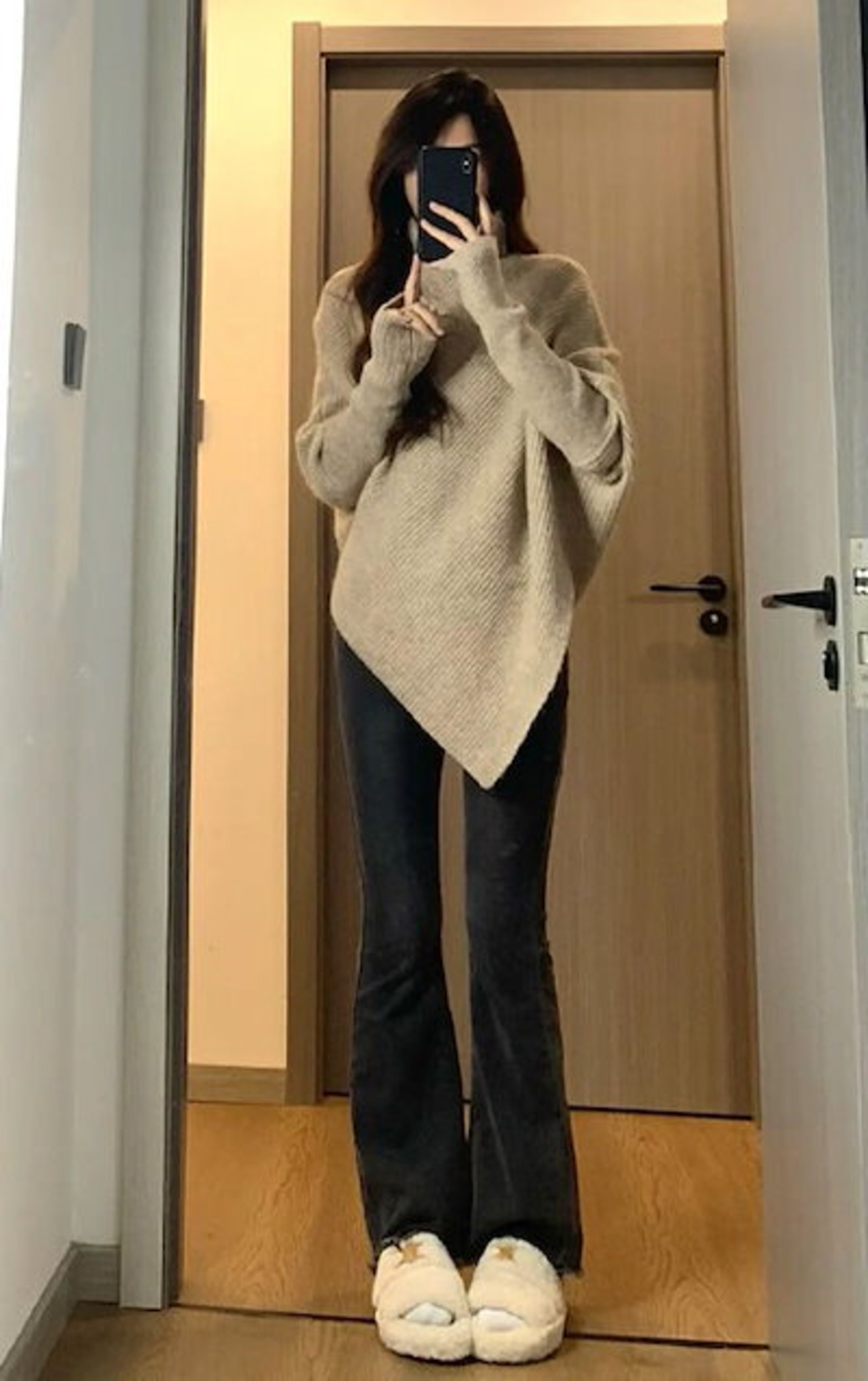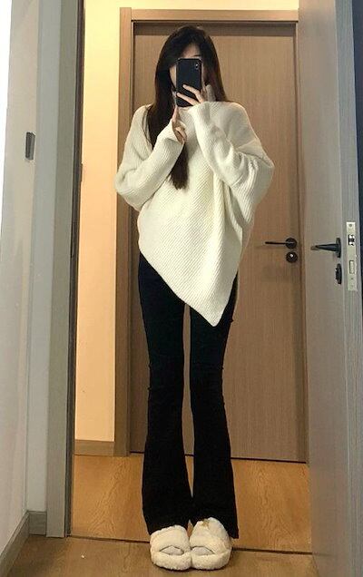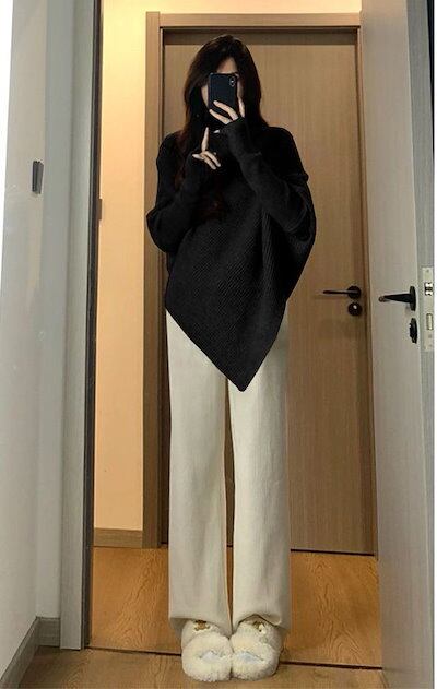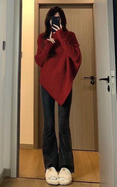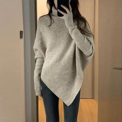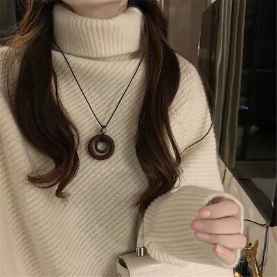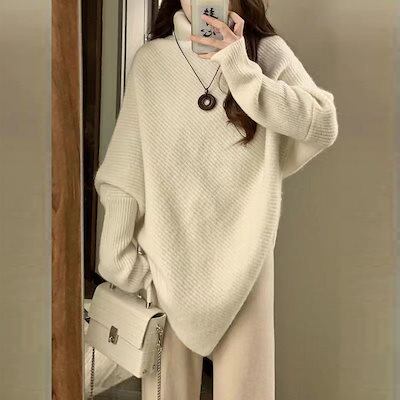 不規則 ハイネック 純色 セーター レディース 秋冬 韓版 ゆったり 怠惰な風 柔らか ニット トップス