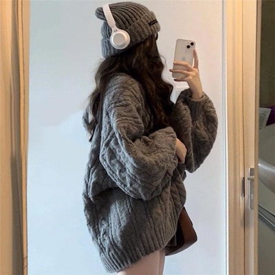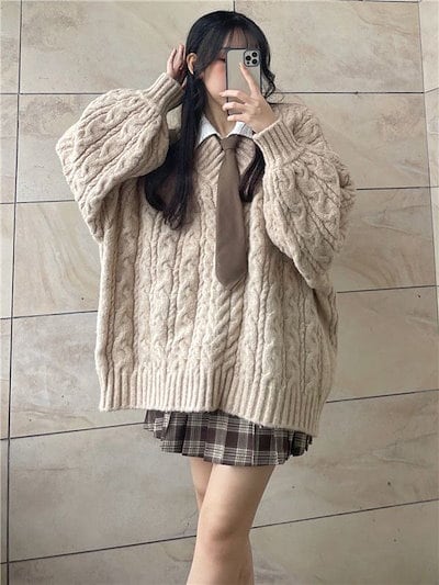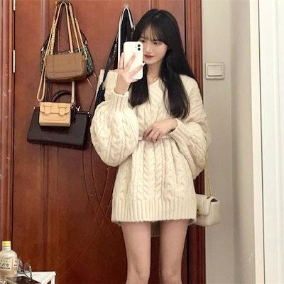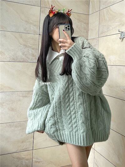 怠惰風 レトロ 厚手 Vネック ゆったり ツイスト セーター レディース 秋冬 学生 韓国ファッション 百掛け 長袖ニット