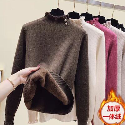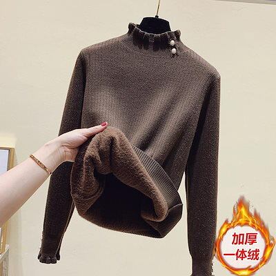 裏起毛 厚手 おしゃれ レディースセーター 秋冬 新作 イミテーションミンク ハイネック ニットインナー