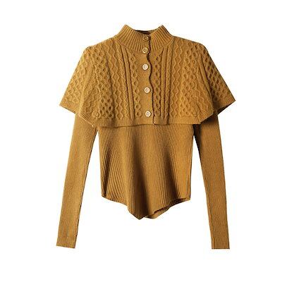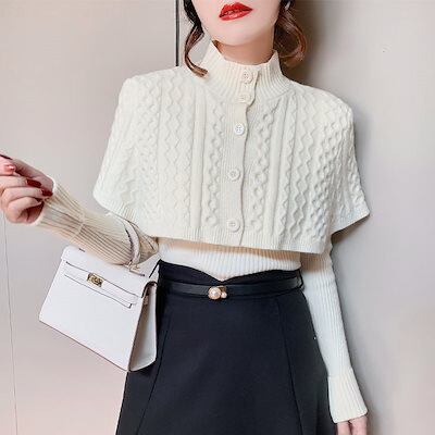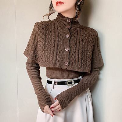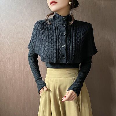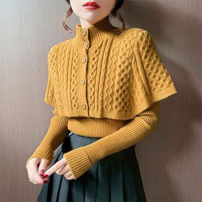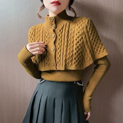 5色 ハイネック レディース ファッション ニット トップス 長袖 ショール 二点セット 秋冬 洋風 セーター