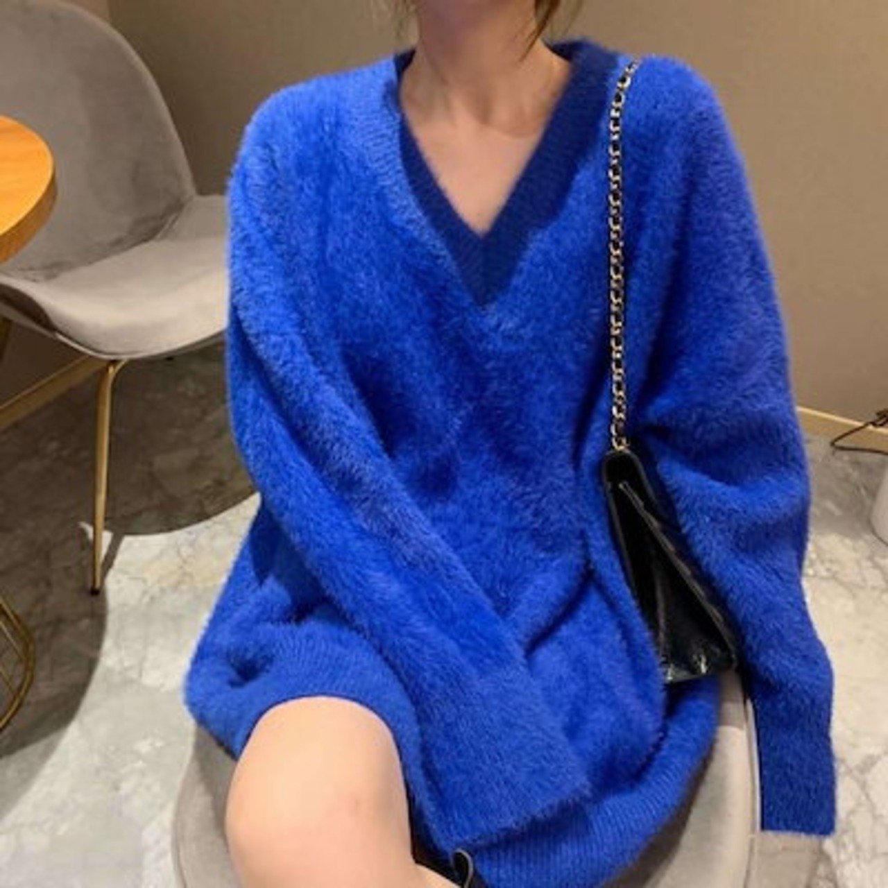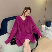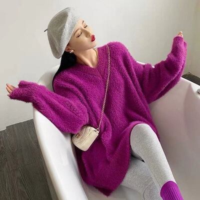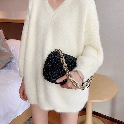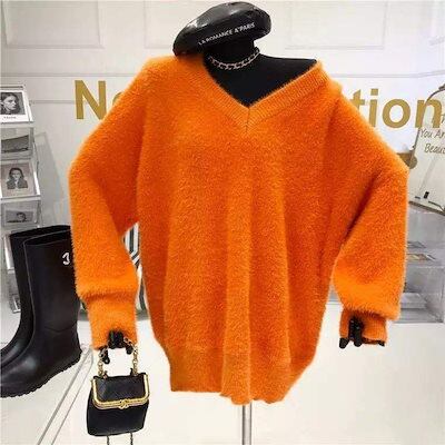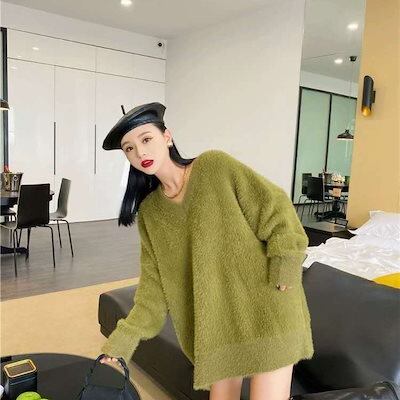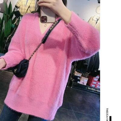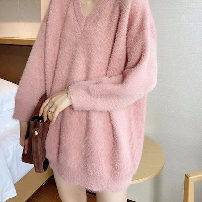 10色 ins 潮 秋冬 セーター コート レディース ゆったり 韓国版 新型 厚手 ミディアム Vネック ニット