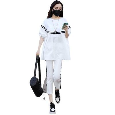 涼しく楽ちんセットアップ レディース 夏 2024新作 韓国 半袖 ゆったり痩せ見えお腹カバーファッションスポーツウェア2着 ルームウェア セットアップ スウェット上下セット スーツ