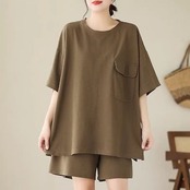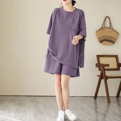 涼しく楽ちんセットアップ レディース 夏 韓国ファッションスポーツスーツ半袖半ズボン2点セット 半袖 ルームウェア セットアップ スウェット上下セット スーツ