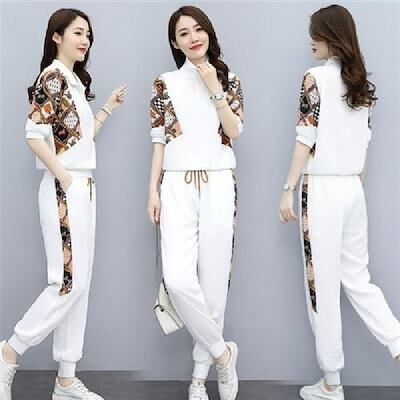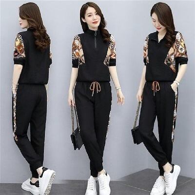 【2点セット】涼しく楽ちんセットアップ レディース 夏 2024新作スポーツカジュアル2点セット 韓国 半袖 ルームウェア セットアップ スウェット上下セット スーツ